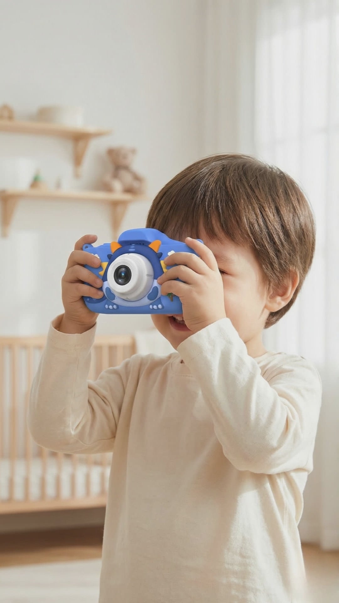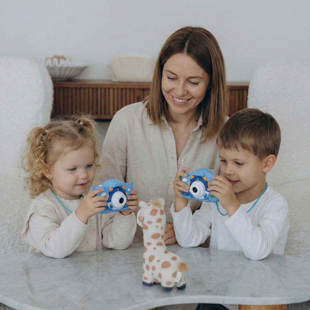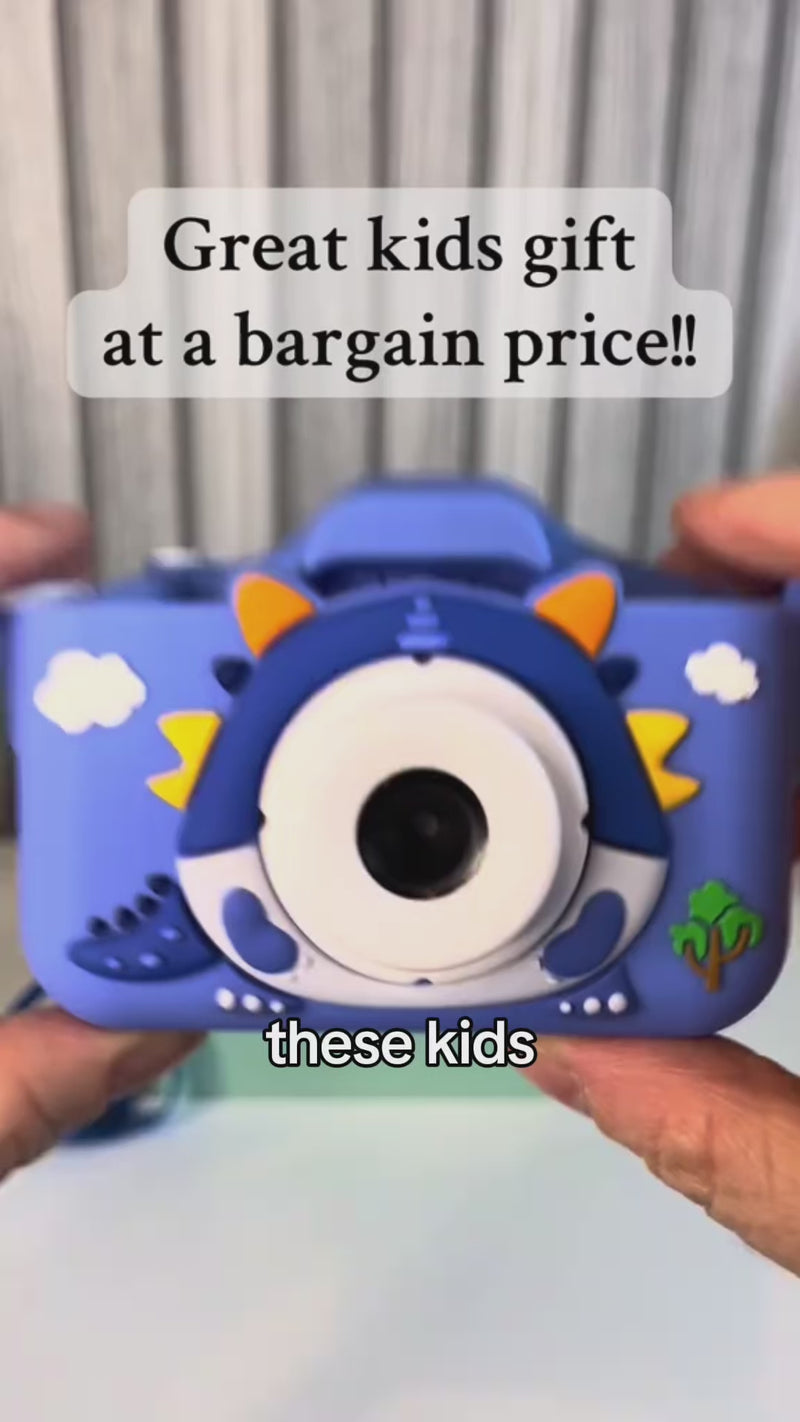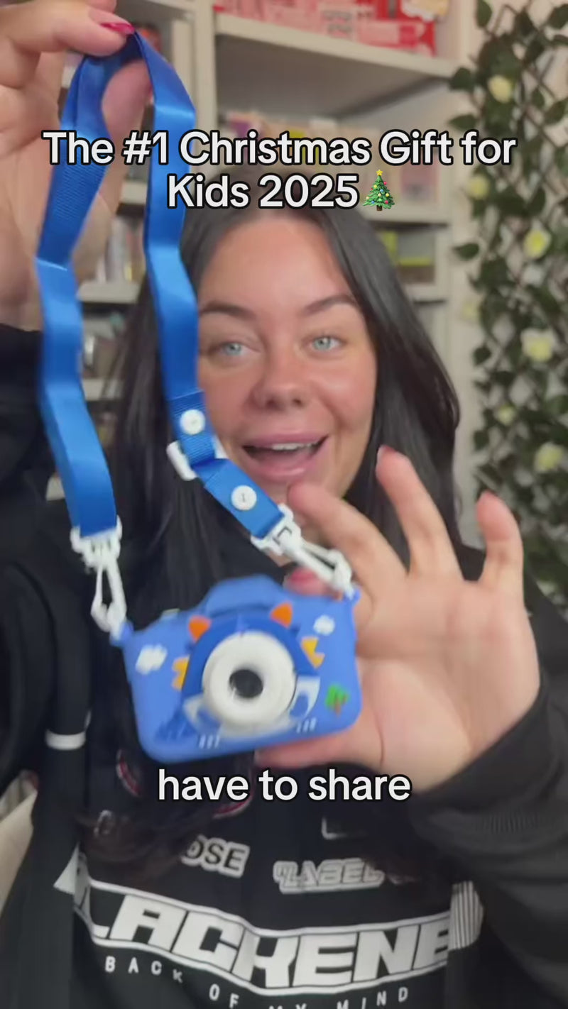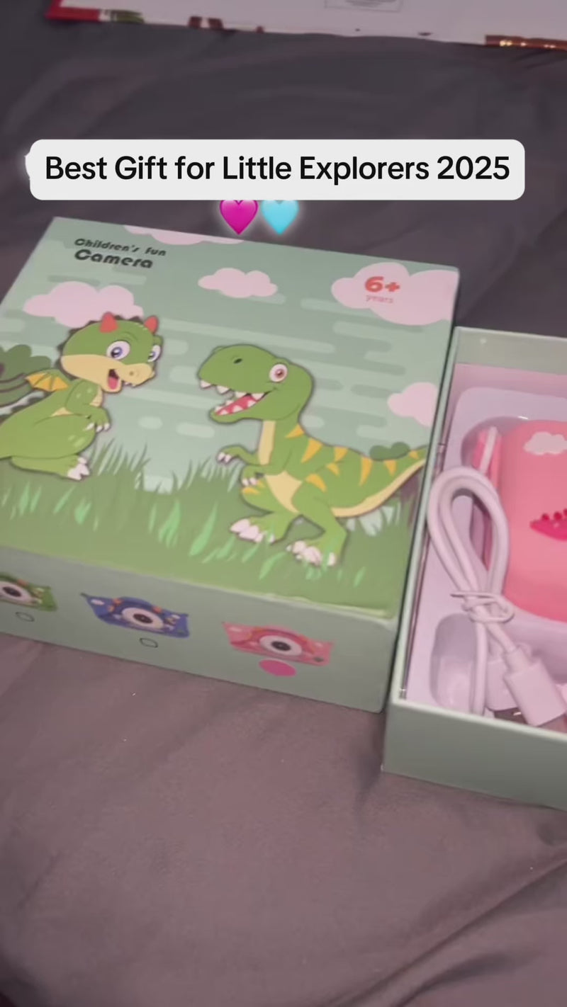 The camera is designed for children aged 3+, with simple buttons, a lightweight build, and fun features kids can use independently.